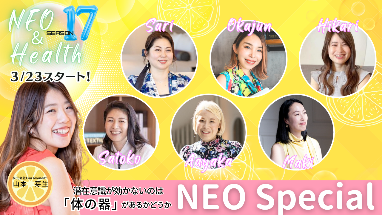 2026/03/23~2026/06/18 3/23~Health&Wellness実践講座(1ヶ月)+ 4/23〜NEO17期(2ヶ月) |
